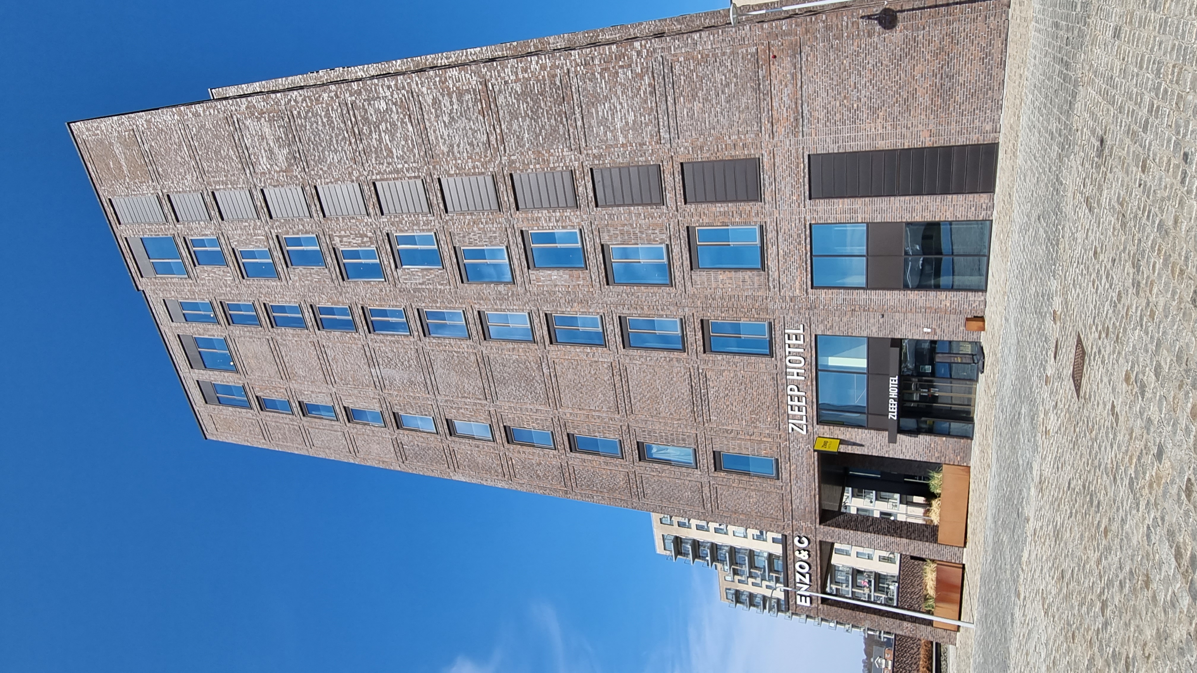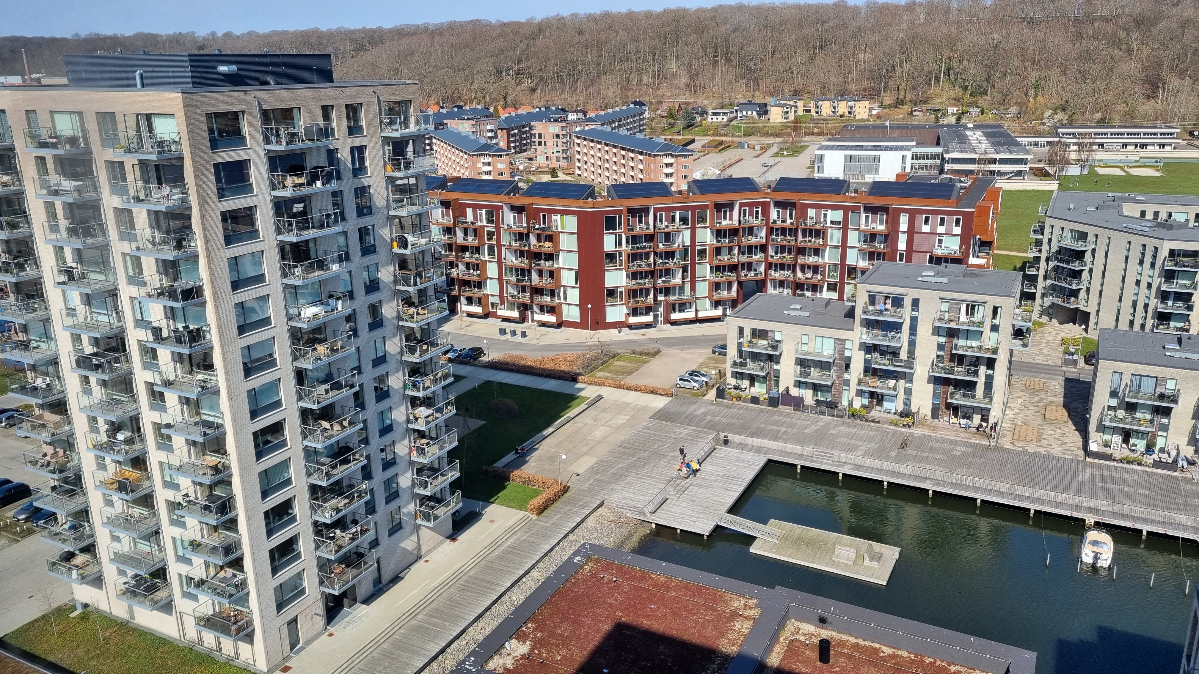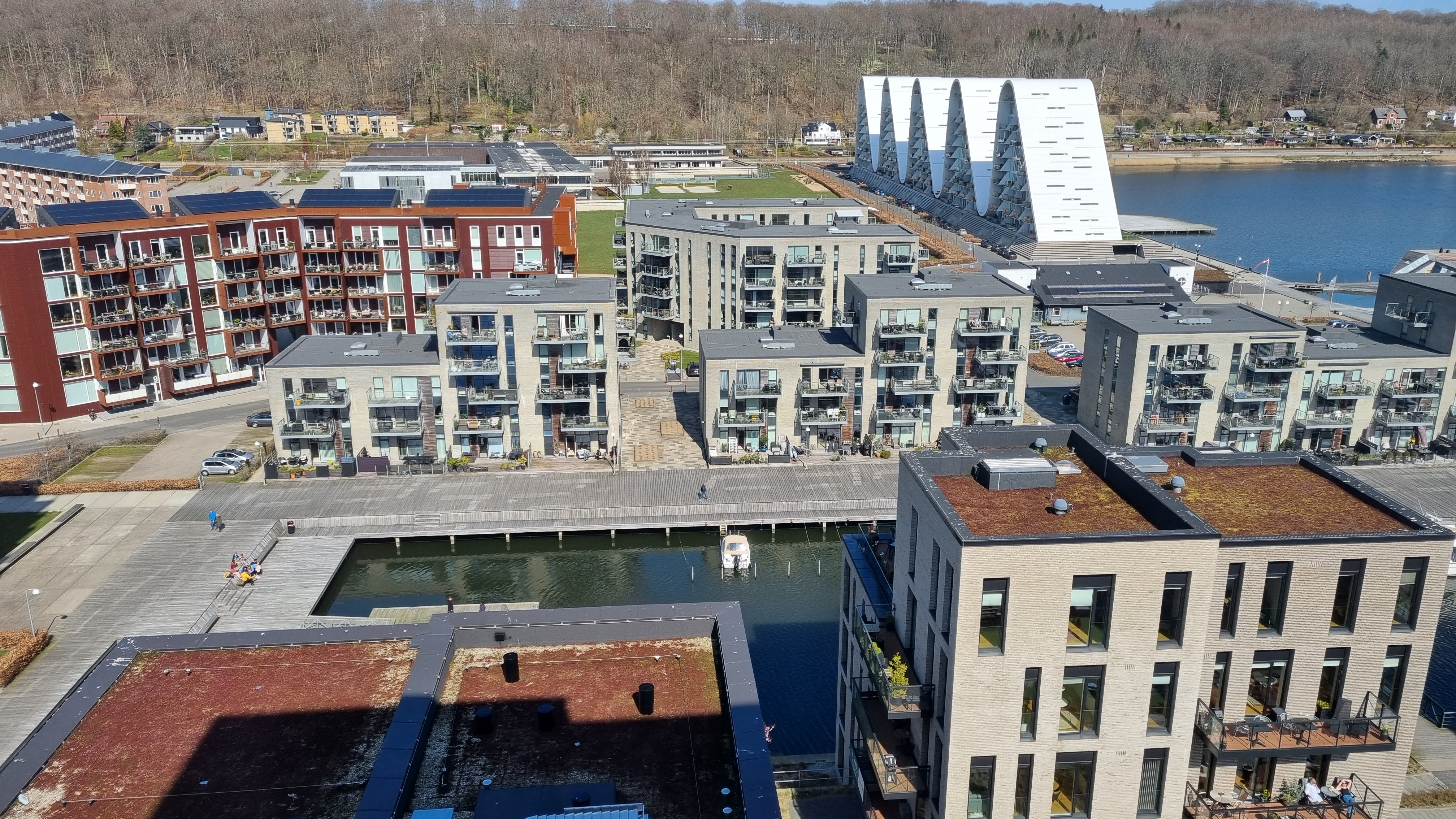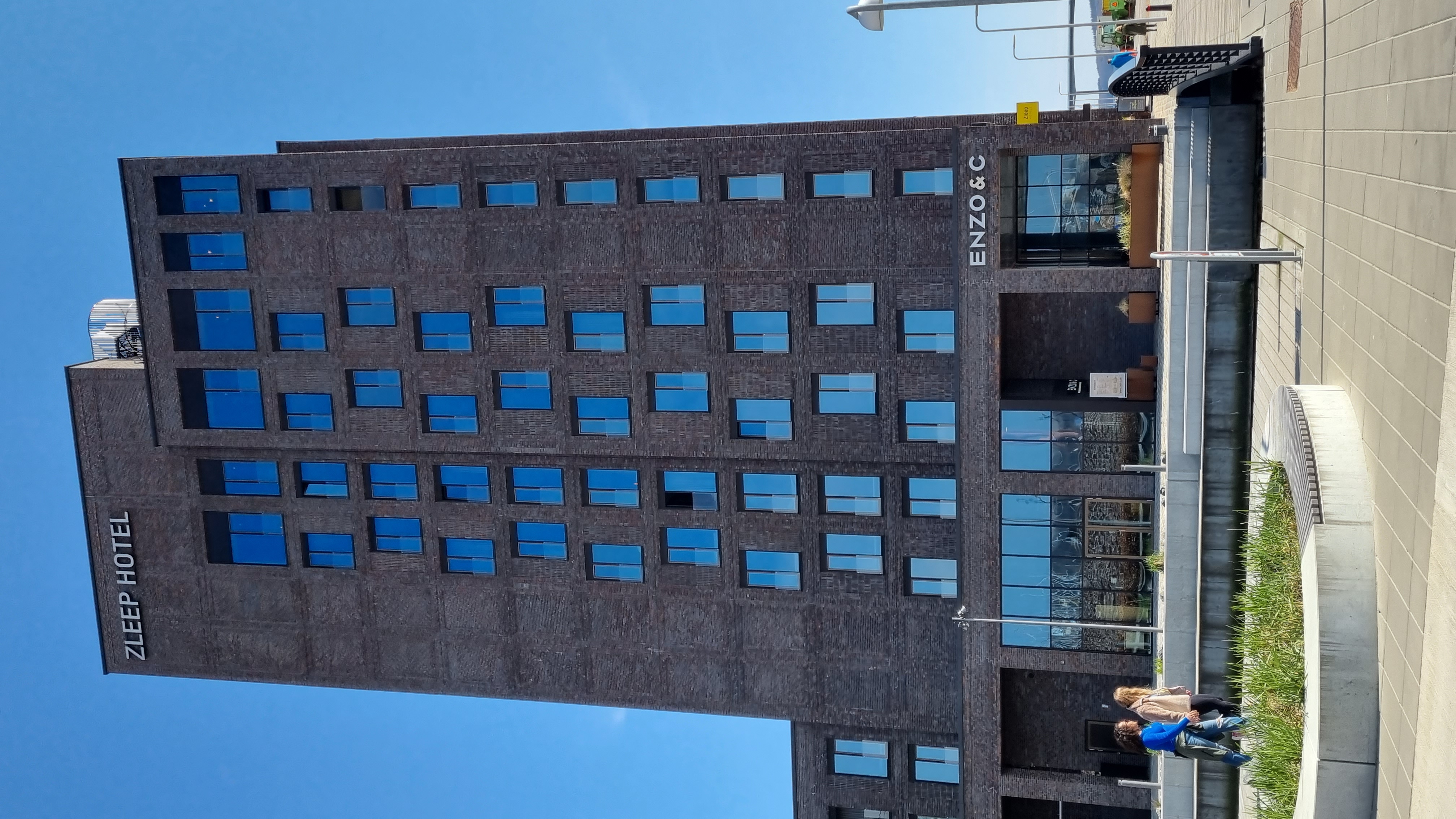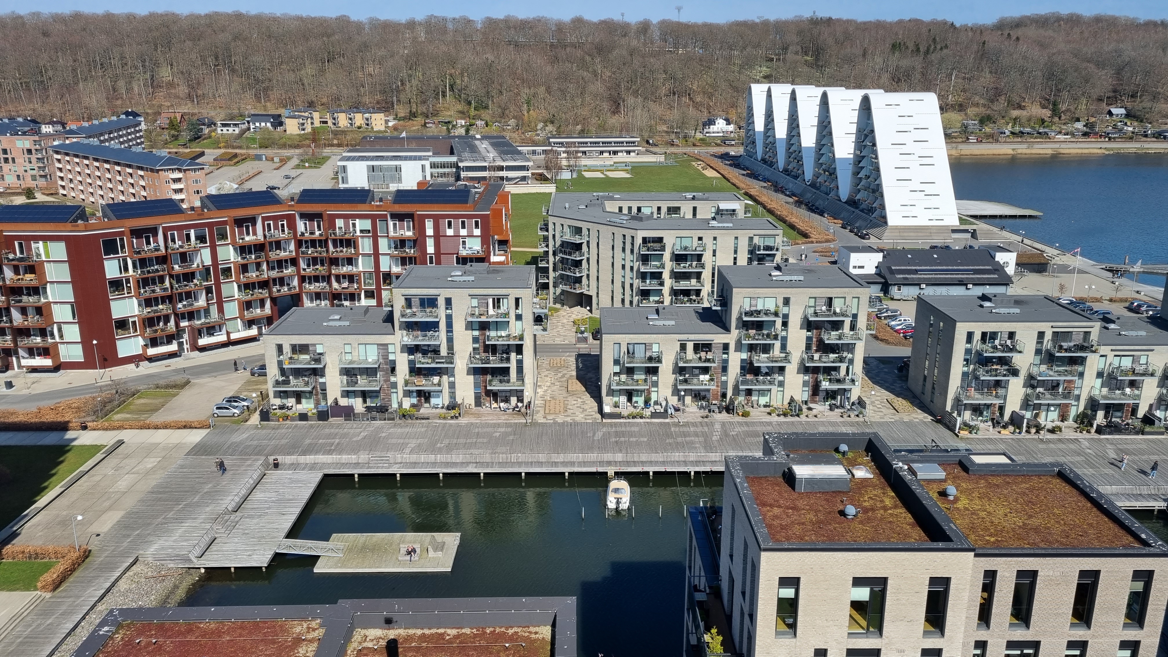 Højhuset Zleep hotel med udsigt fra 11 etage, og Fjordenhus.