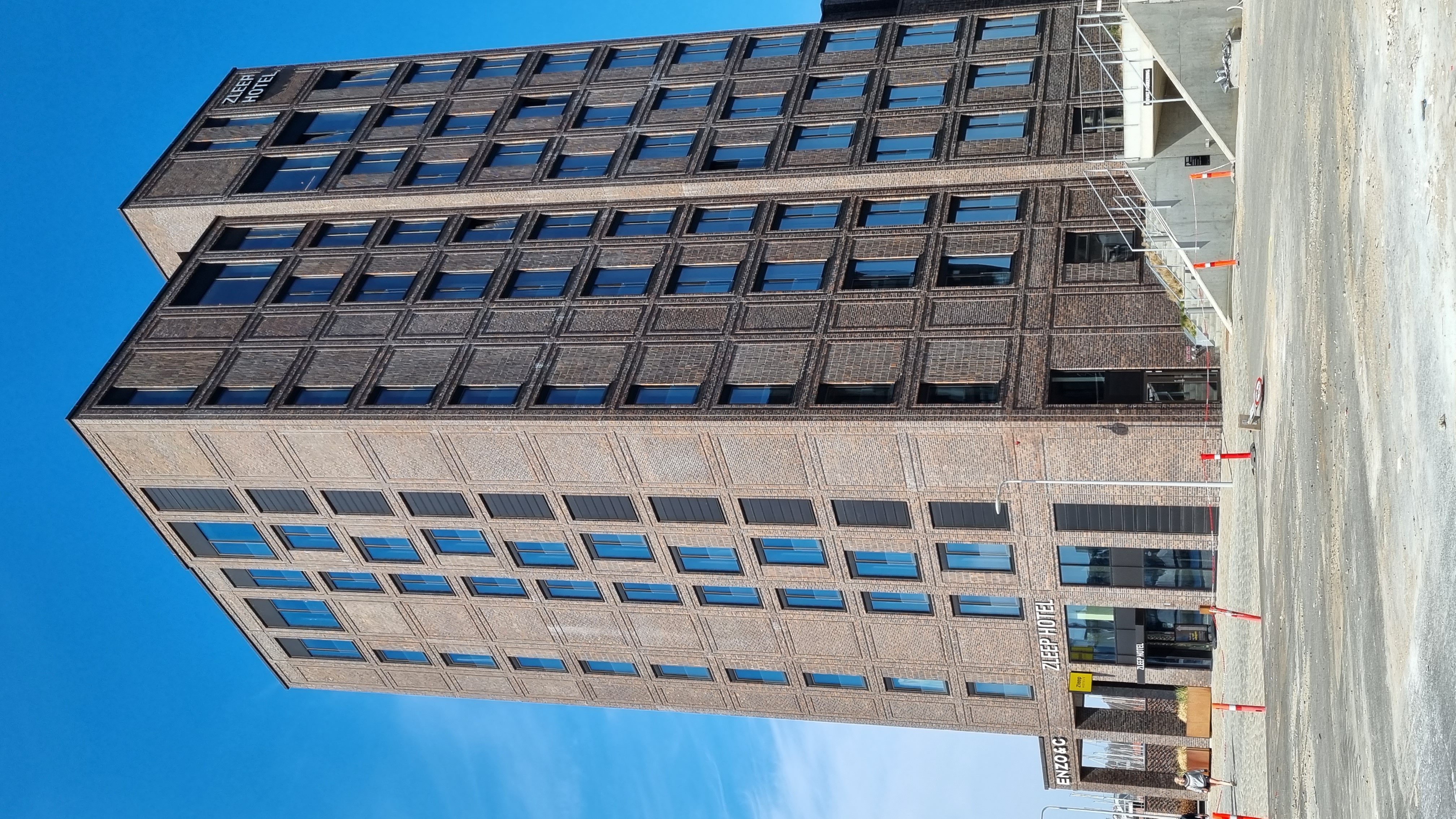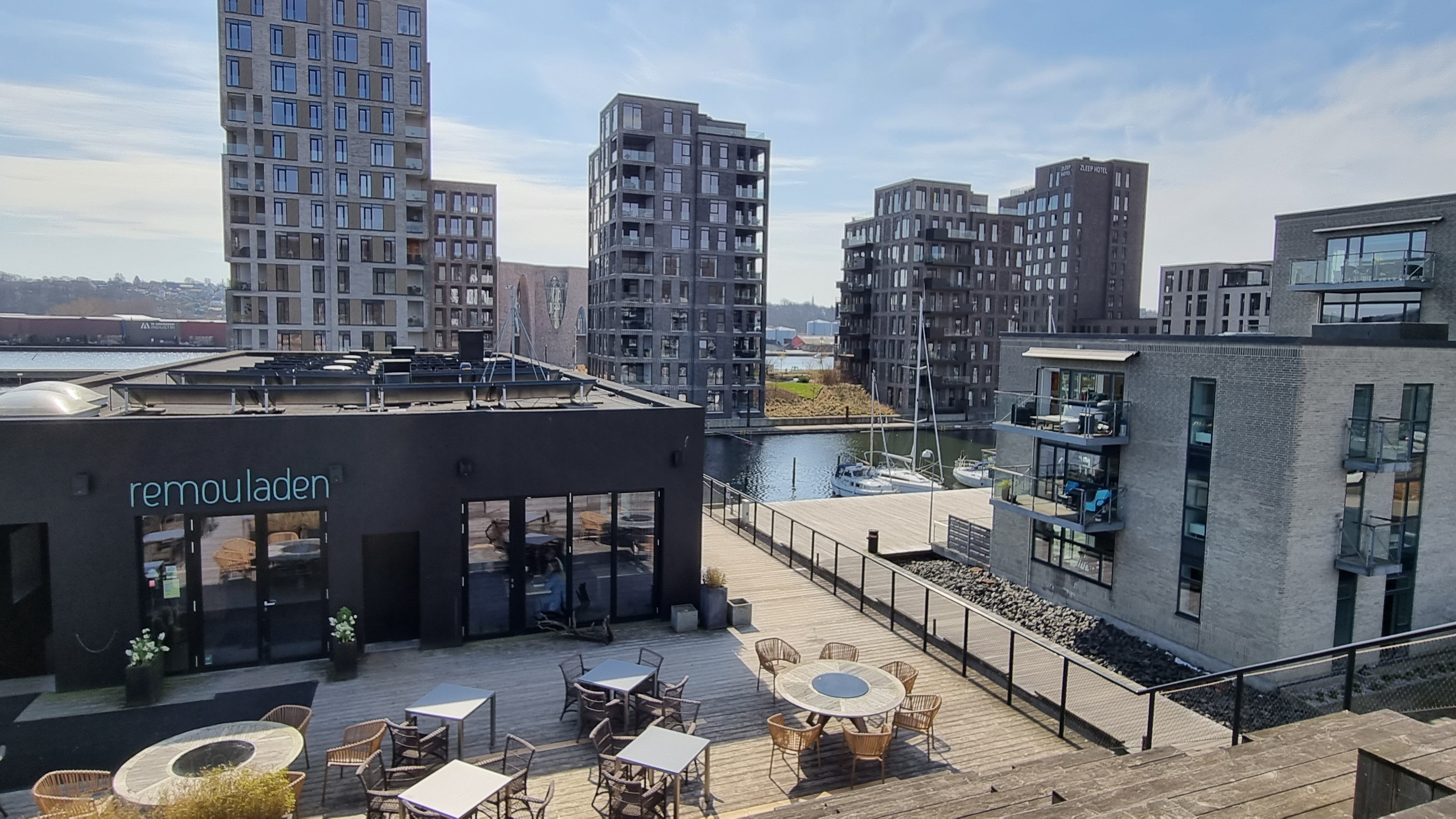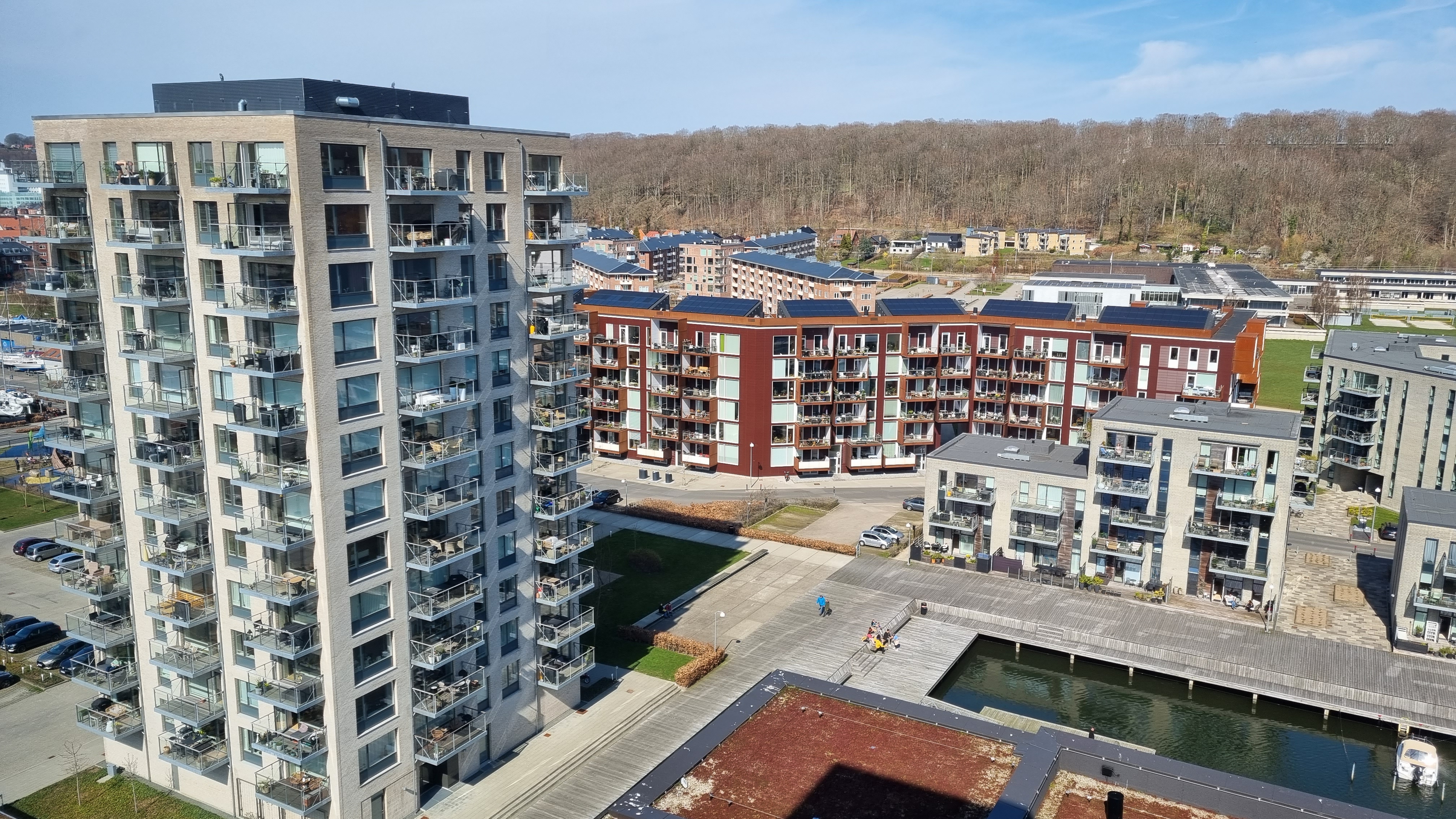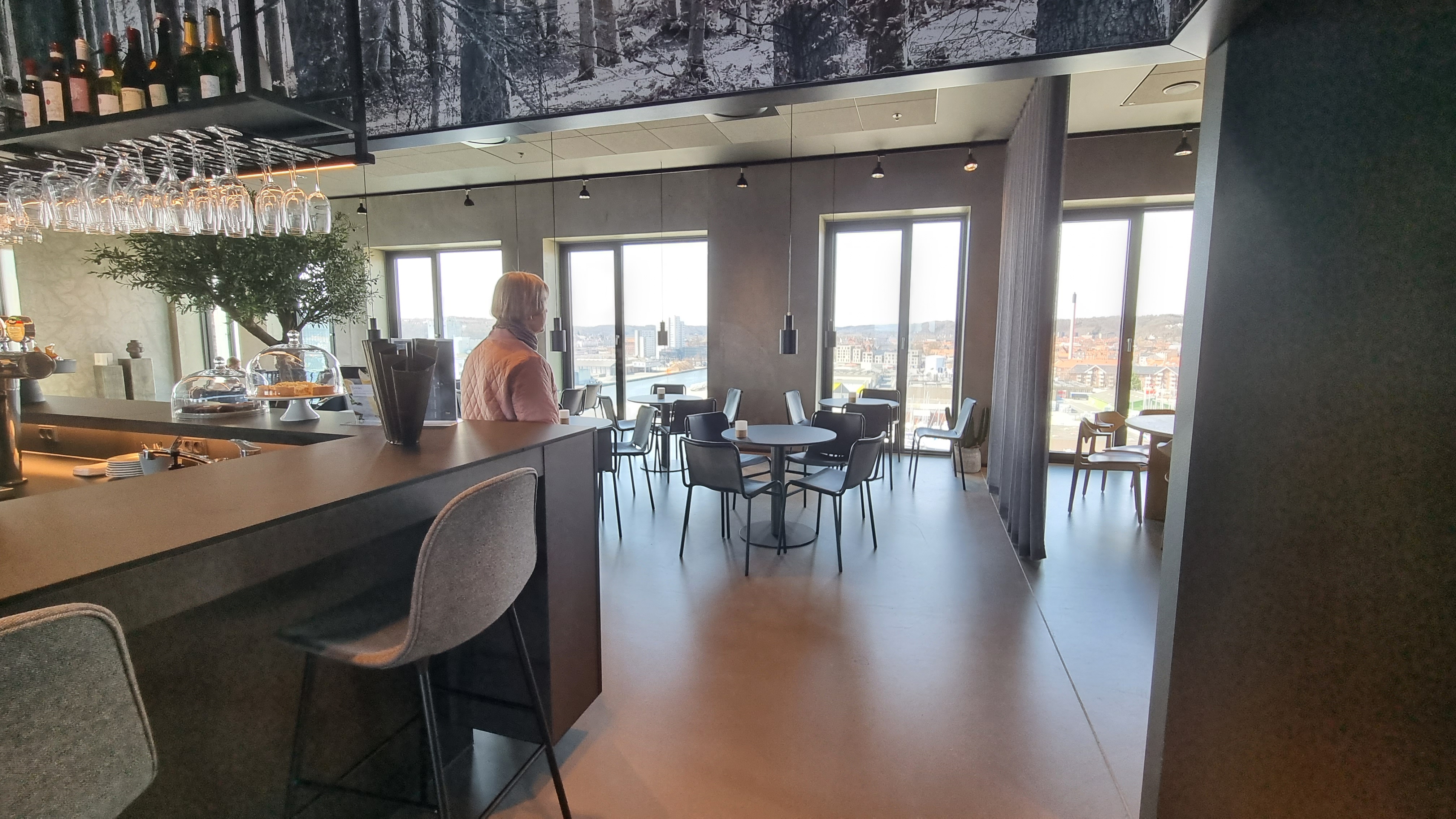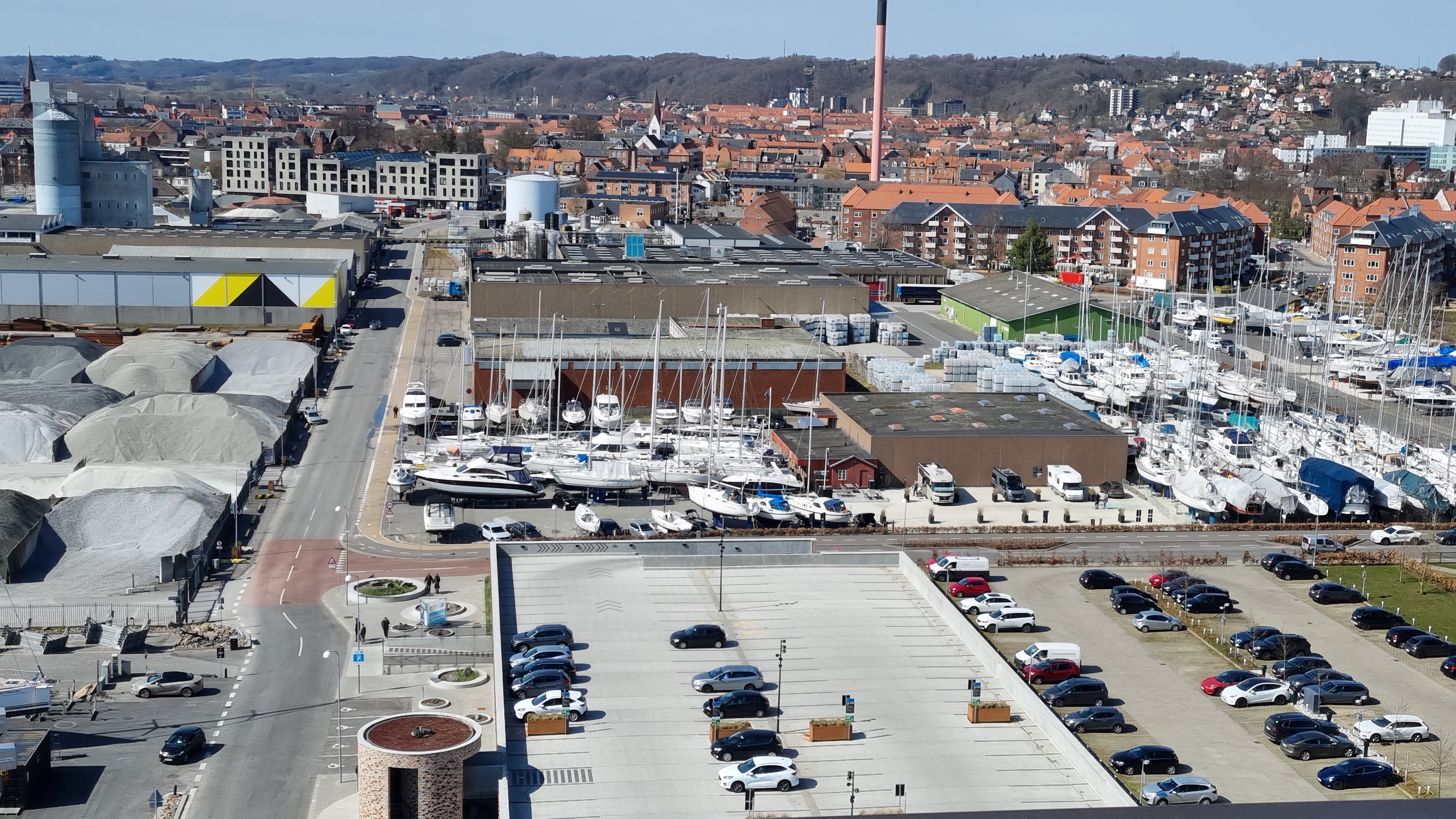 Højhuset Zleep hotel med udsigt fra 11 etage, og Fjordenhus.