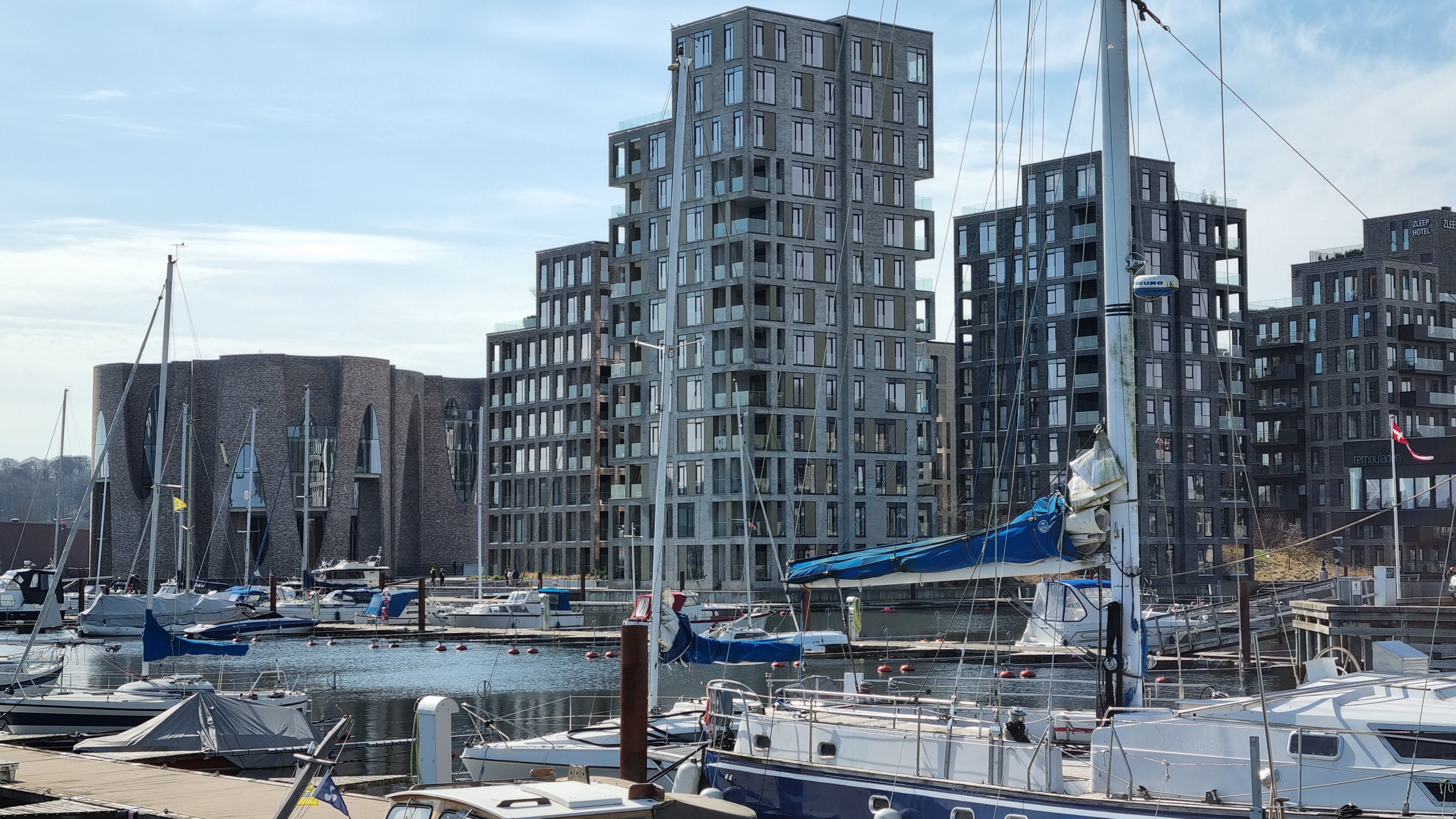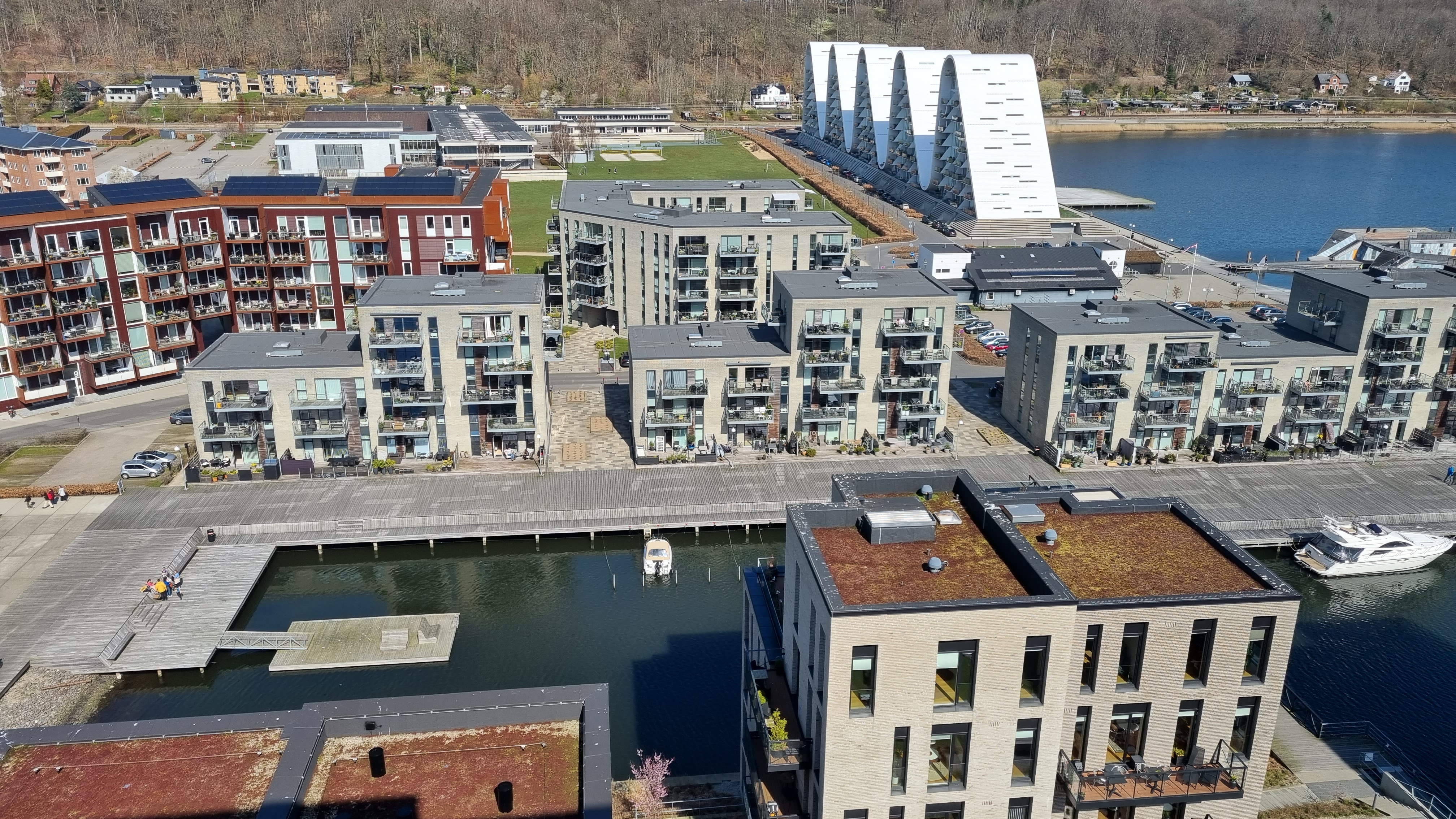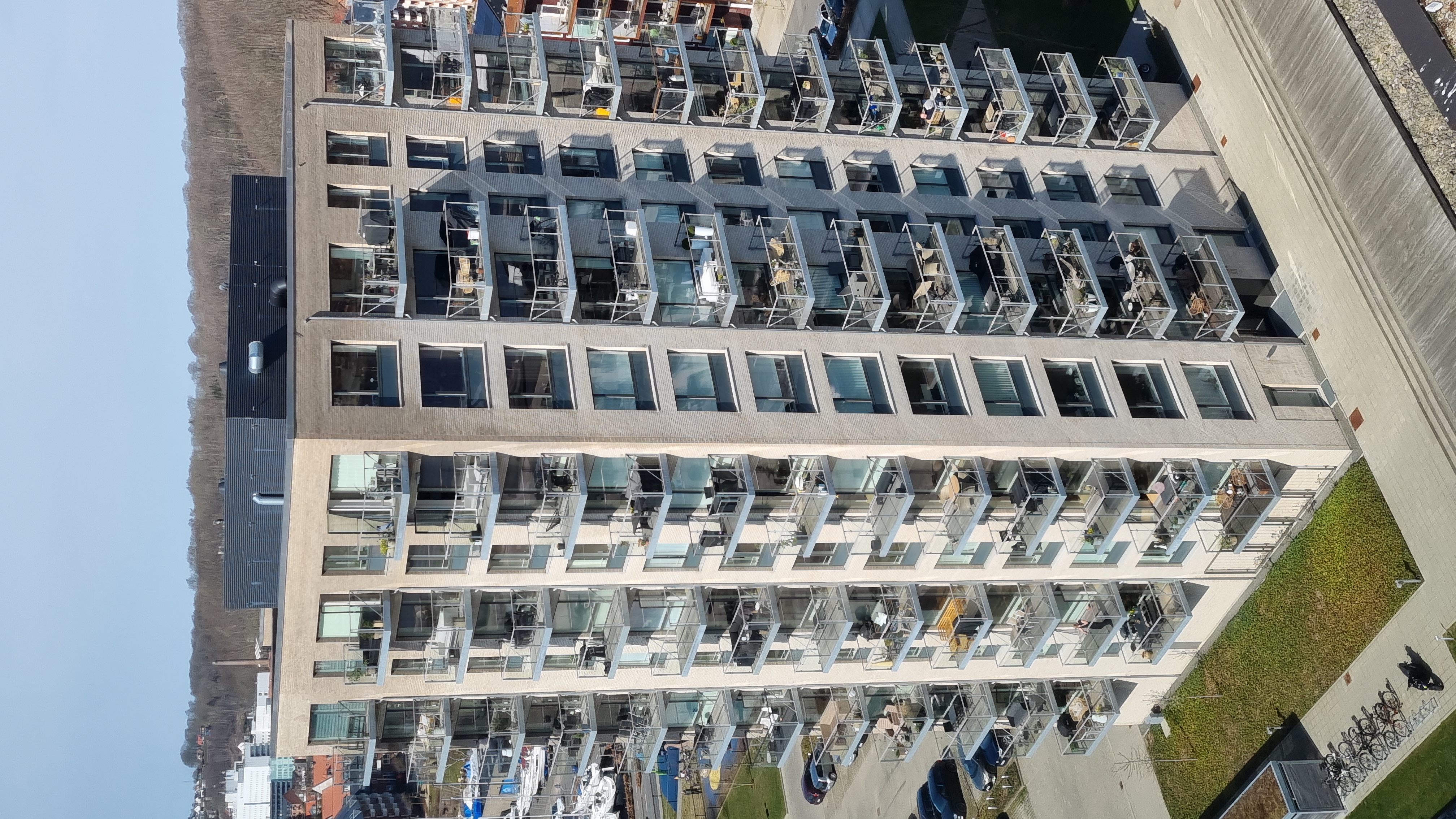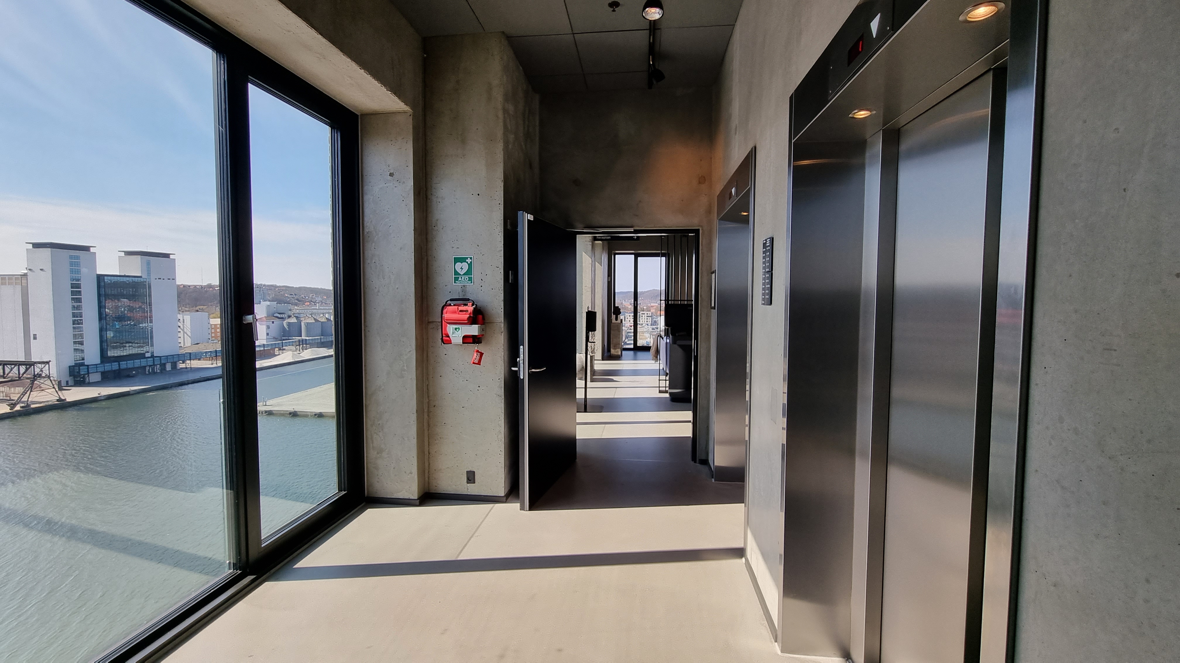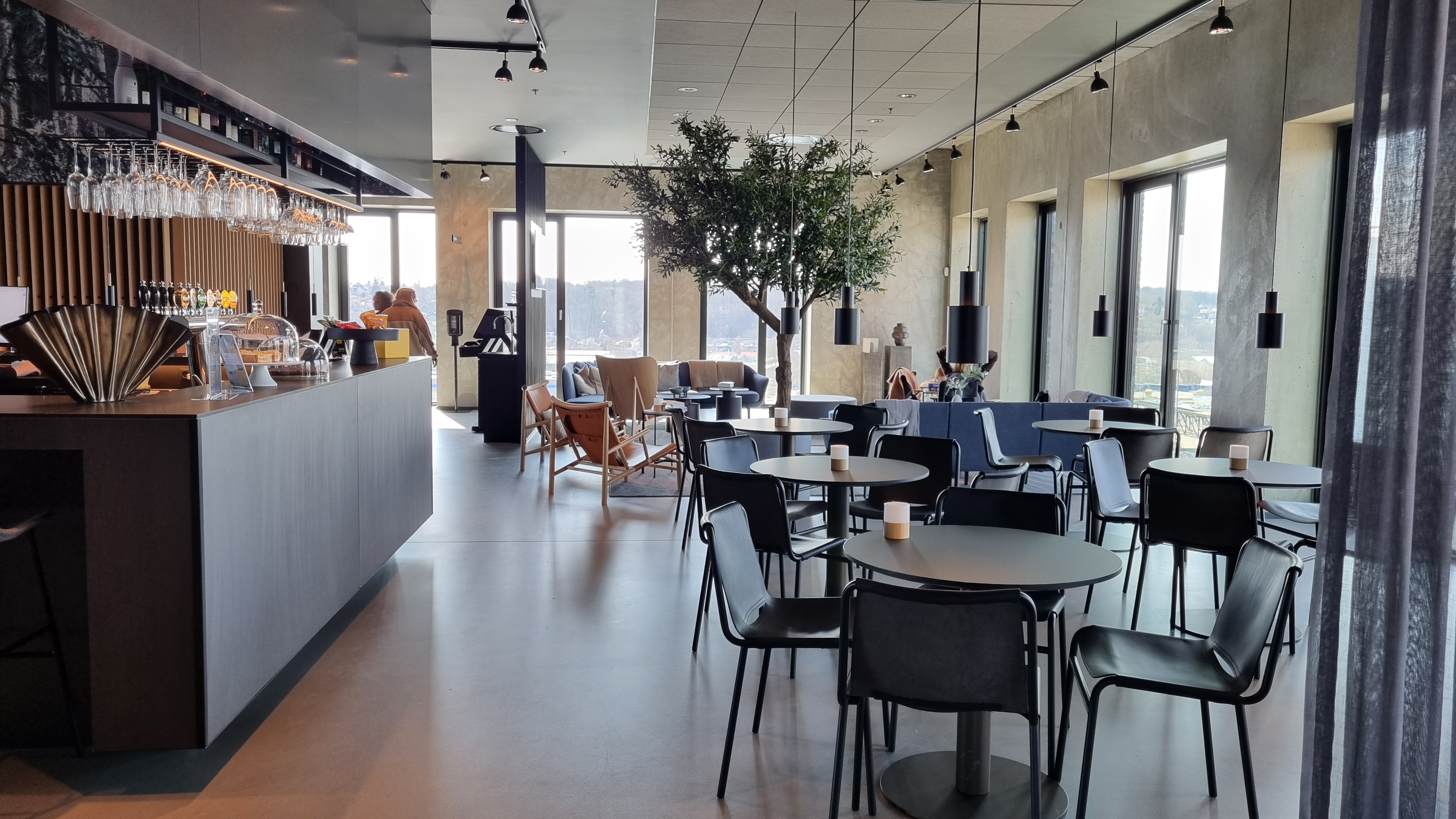 Højhuset Zleep hotel med udsigt fra 11 etage, og Fjordenhus.