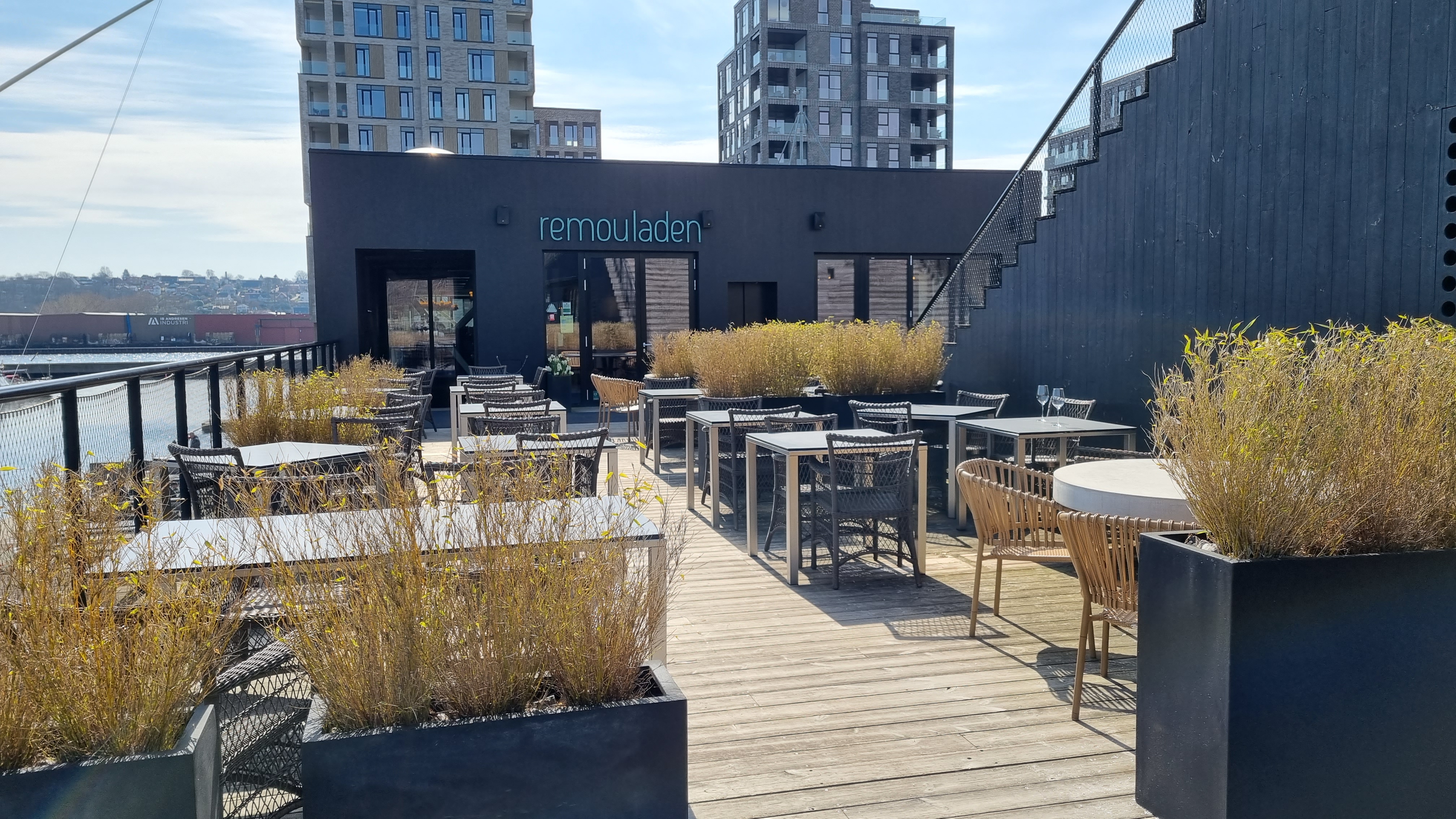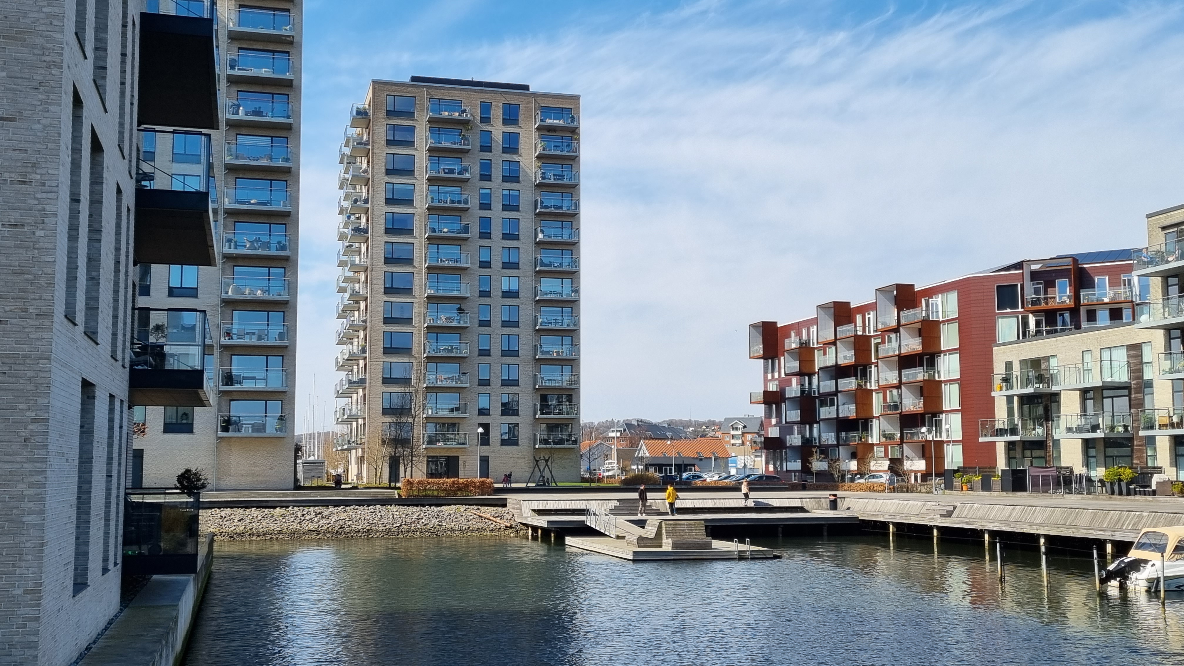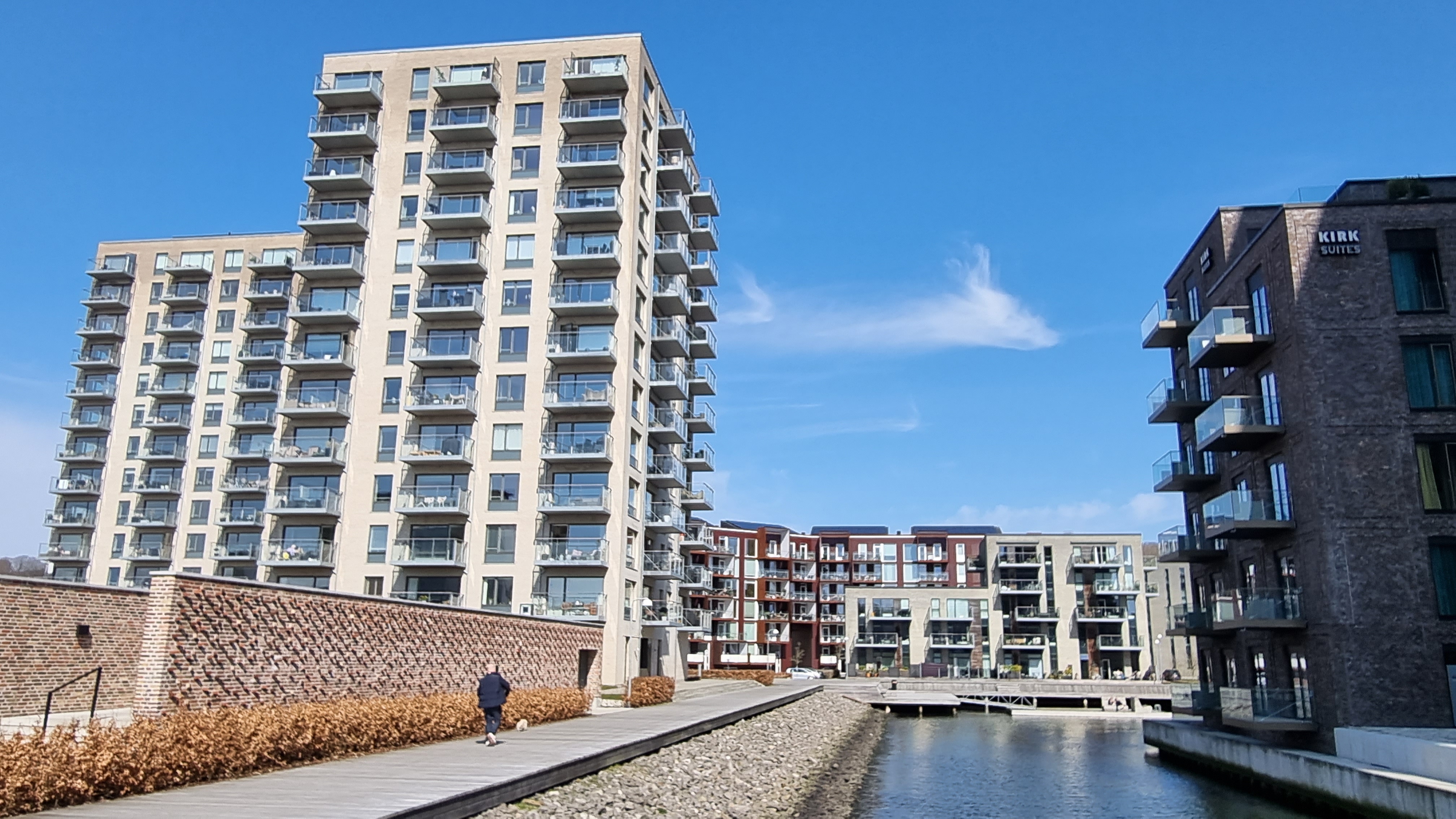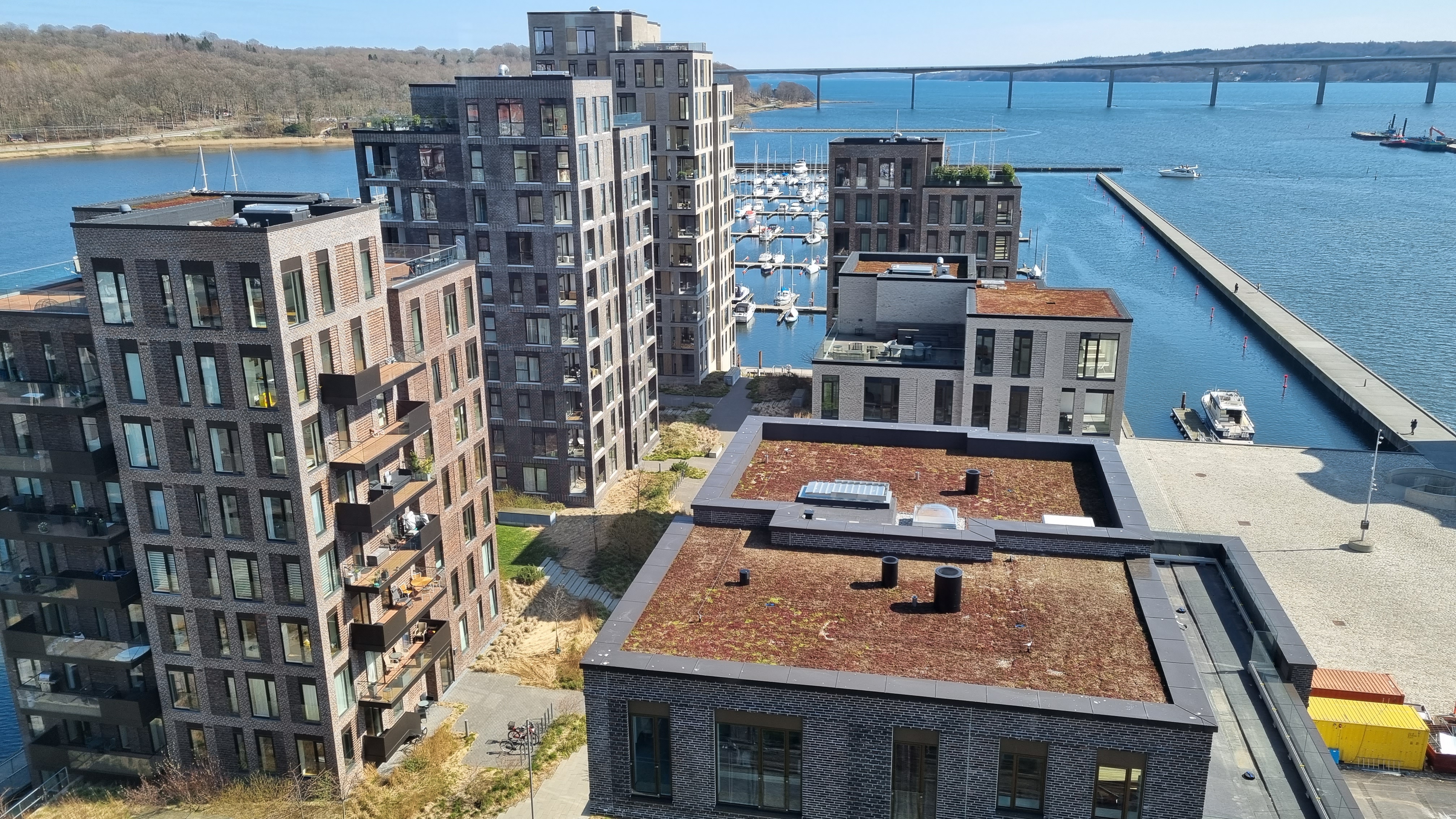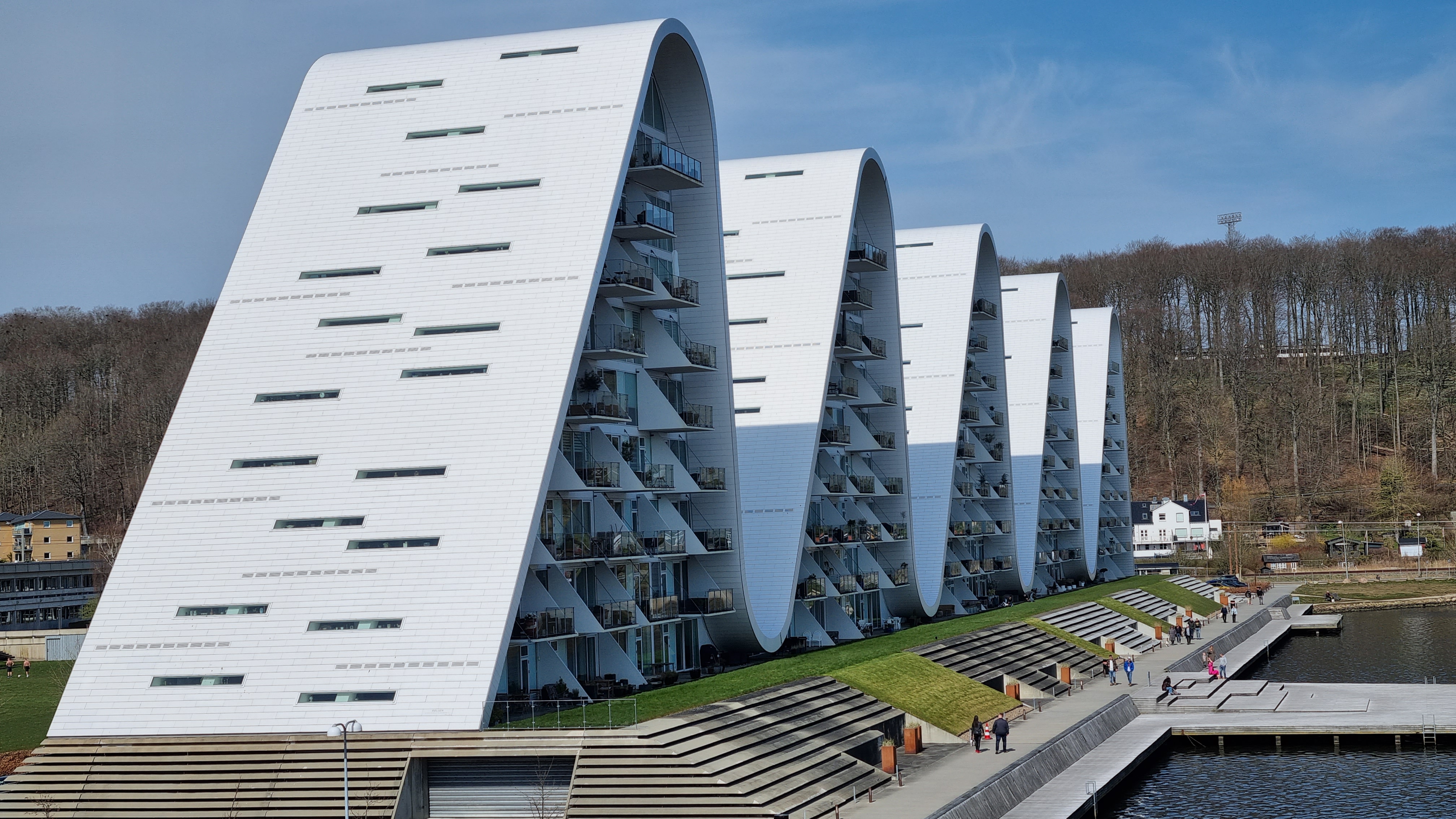 Højhuset Zleep hotel med udsigt fra 11 etage, og Fjordenhus.